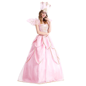 2025 New Arrival Women's Pink Flower Fairy Dress Vintage Style Wings Hat Halloween Cosplay Party Stage Performance Game Costumes