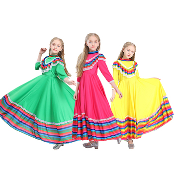 Geleneksel Guadalajara meksika halk dansçı elbise kızlar için Jalisco cadılar bayramı parti giysileri çocuklar için 3 renk